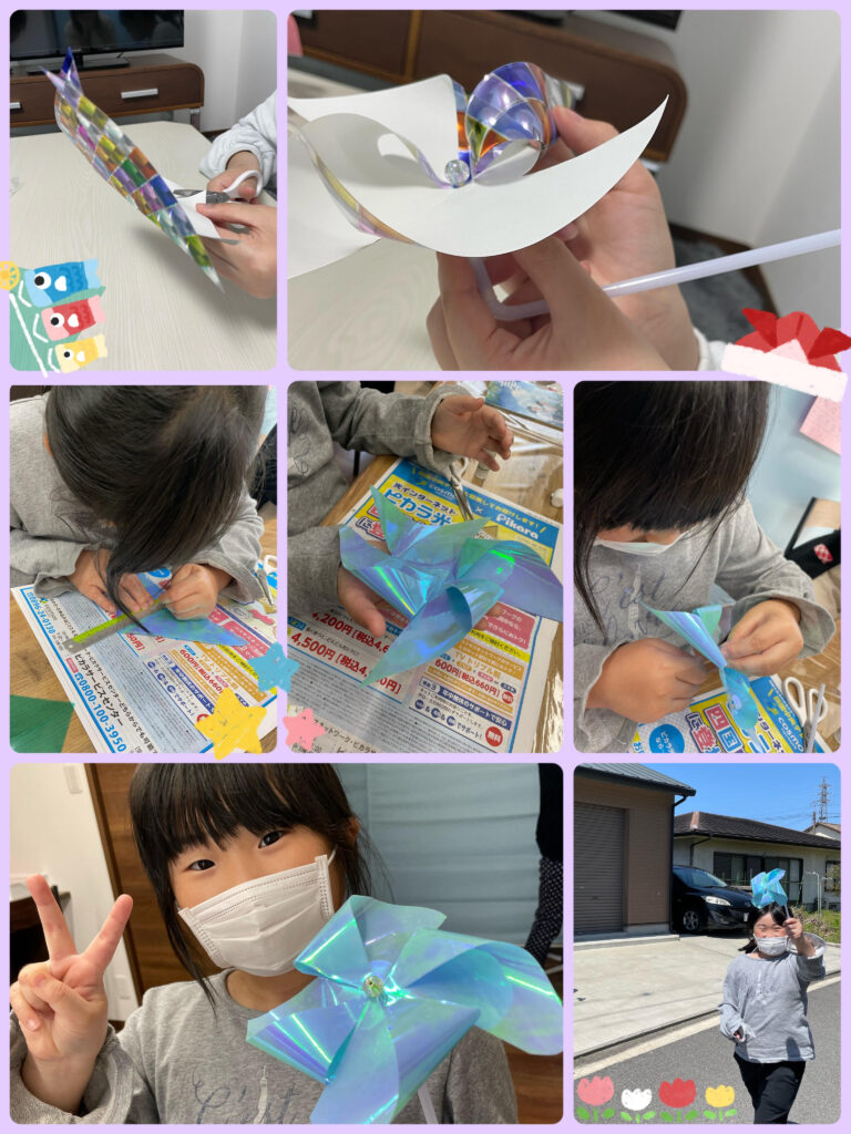 折り紙で風車を作ったよ!