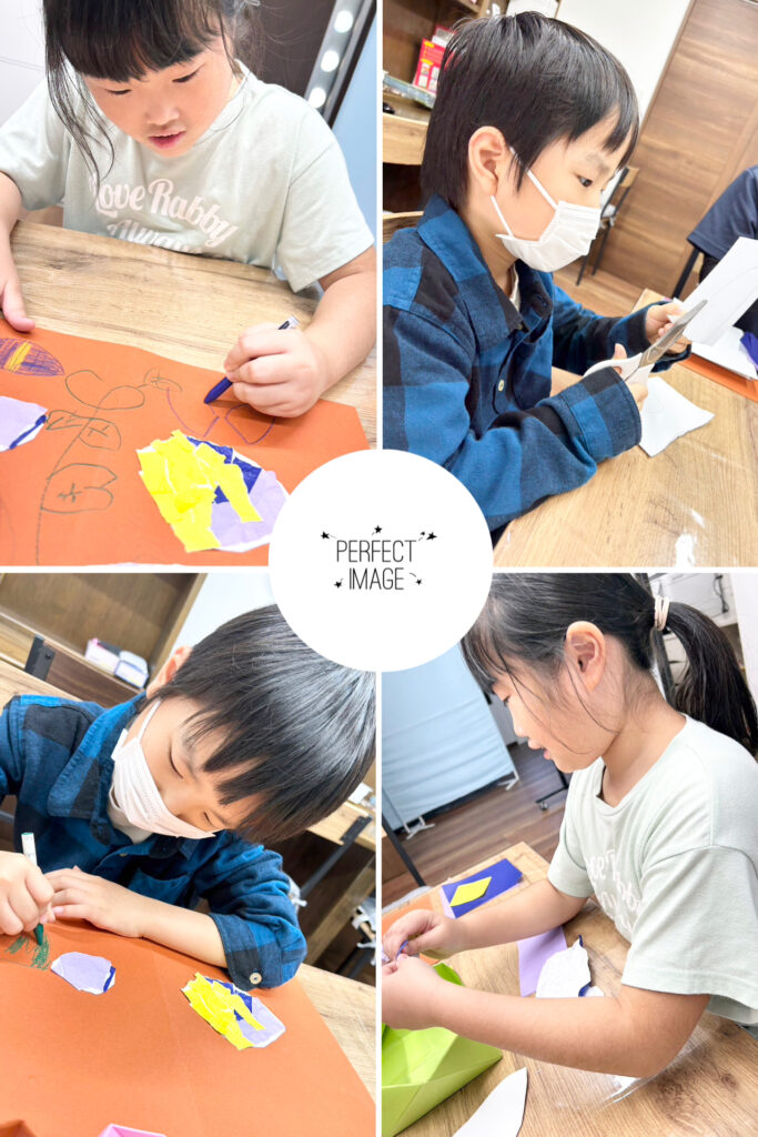 今日はちぎり絵でさつまいもを作ったね💯絵を書いたり、紙を切り取ったりと作業中はみんな真剣な様子😌