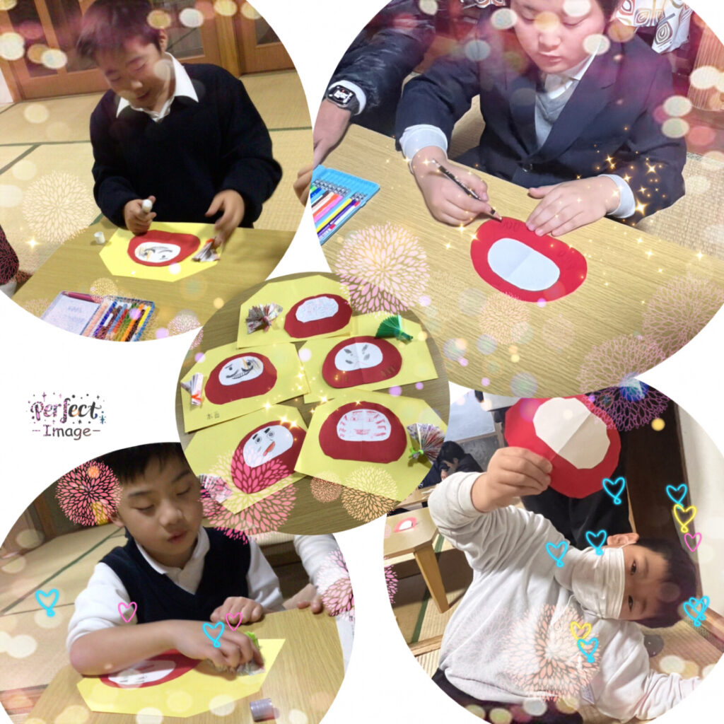 いろんな、だるまさんがいて、楽しい😀飾りができたんだ🥰