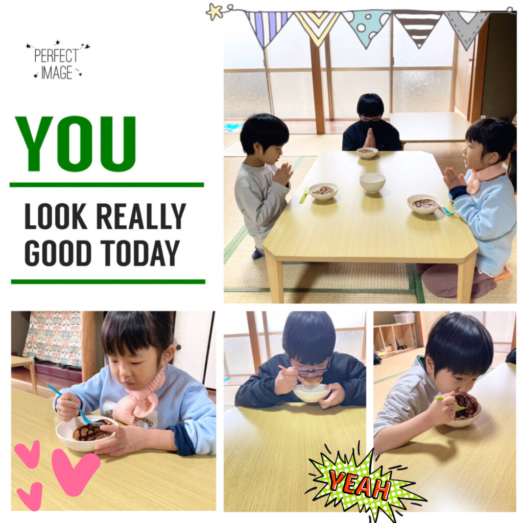「いただきます」と元気よく言えて、食べ始めると「おいしいー😋」と言いながら食べたね🙌