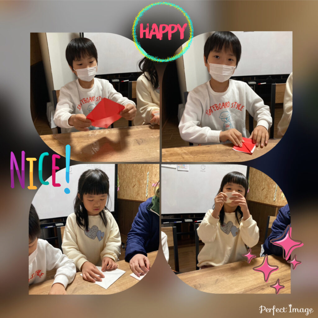 「なかなかむずかしいなー😅」「ここを折るのがむずかしいよー💦」