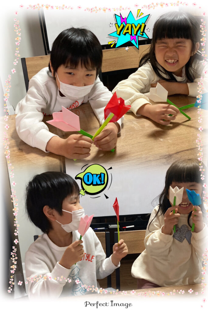 「上手に作れるかなー😊」「チューリップ作るのははじめてだよ🎵」
